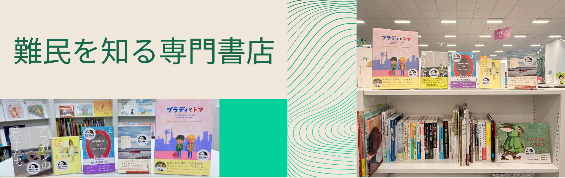 東京都内のシェア型書店3箇所で、難民をテーマにした書籍を専門に扱う書店を運営しています。小説や絵本、専門書など難民について多様な視点で学べる本を厳選して取り揃えています。