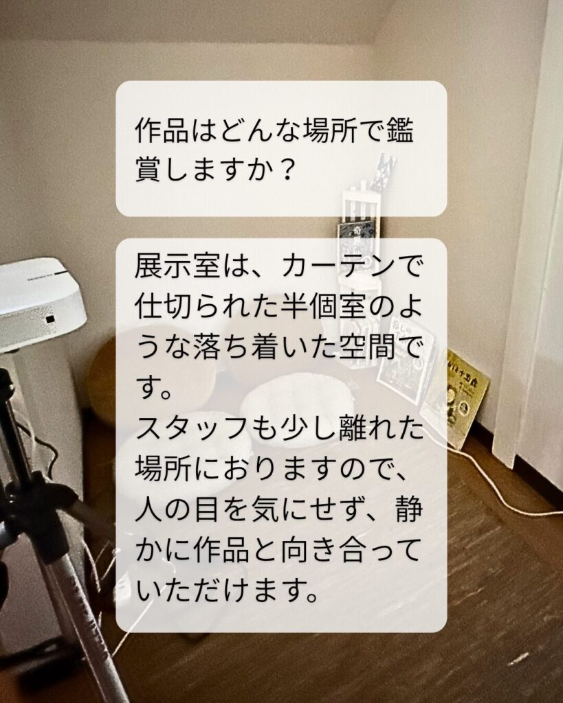 A おひとり、または1組ずつ、作品と向き合う時間を大切にしています。予約なしでふらりと立ち寄れるオープンデーもあります。