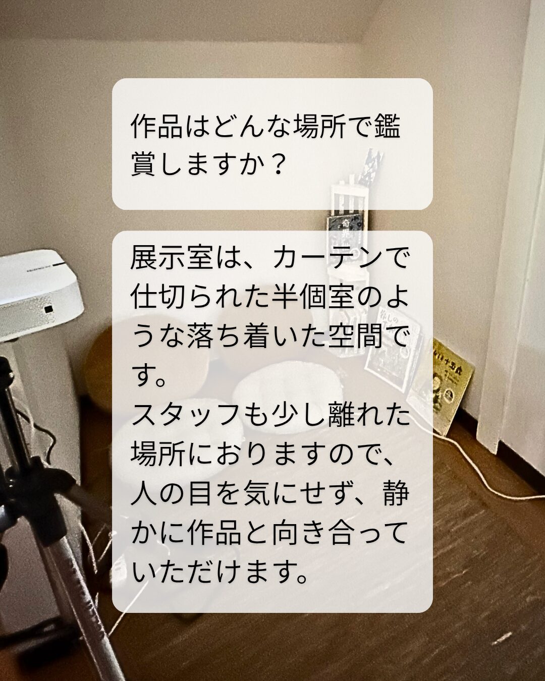 A おひとり、または1組ずつ、作品と向き合う時間を大切にしています。予約なしでふらりと立ち寄れるオープンデーもあります。